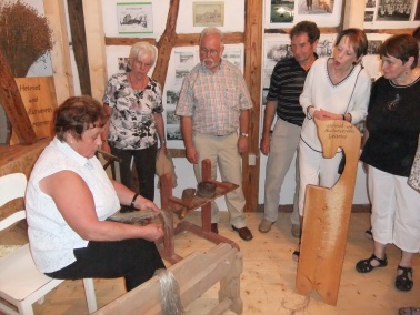Anschließend führte Dieter Mütze vom Kulturverein Haubern durch das 2011 offiziell eröffnete Museum. Gusseiserne Waffeleisen, alte Küchengerätschaften, die gute Stube, eine Schreinerei, Schulbänke aus dem letzten Jahrhundert und vieles mehr ließen Erinnerungen an die eigene Kindheit wach werden. In den letzten Monaten sind eine Imkerei und ein Naturbiotop, bei dem der Kulturverein vom NABU unterstützt wurde, hinzugekommen. 2005 entstand im Rahmen des Dorferneuerungsprogramms die Idee, historisches Brauchtum zu bewahren. Der Kulturverein wurde gegründet und das ehemalige Raiffeisengebäude erworben. Mittlerweile sind in dem Gebäude die Feuerwehr und im Obergeschoss das Dorfmuseum untergebracht. „Motor des Museums war und ist Dieter Mütze“, unterstrich Vereinsvorsitzender Rolf Eckel, „ohne seinen unermüdlichen Einsatz wäre das Museum so nie zustande gekommen.“