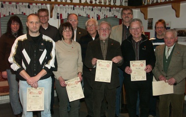 Reinhard Kahl zusammen mit allen geehrten Mitgliedern des SVA anlässlich der diesjährigen Jahreshauptsammlung des SVA im Sportlerheim