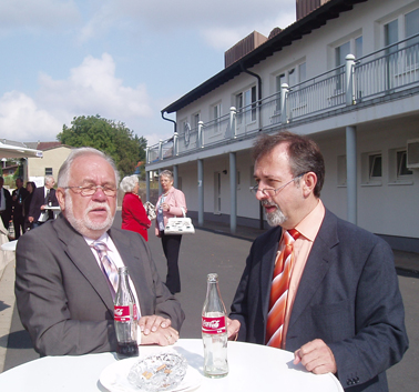 Reinhard Kahl im Gespräch mit dem Leiter der Holzfachschule Heinz Moering