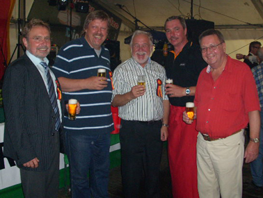 Ulrich Meßmer, Walter Mombrei, Reinhard Kahl und Horst Rothauge zusammen mit dem Festwirt