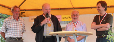 von links: Ortsvorsteher Werner Blanc und die drei Träger des Backhausordens Wolfgang Wipper, Reinhard Kahl und Uwe Ermisch