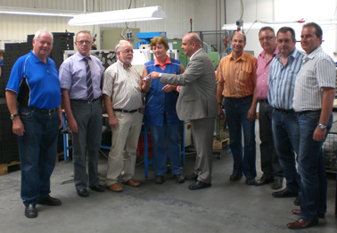 Im Metallbau konnten sich die Politiker ein Bild machen, wie Transportbehälter aus vielen Einzelteilen in mühevoller Handarbeit zusammengeschweißt werden. Beeindruckt waren die Politiker, das die Stammbelegschaft in den Jahren von 12 auf über 100 angewachsen ist. Auch Ferienjobber und Praktikanten sind in dieser Firma vertreten.