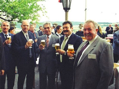 Auf gute Zusammenarbeit! Burgenland, Hessen, Waldeck-Frankenberg! Beschreibung von links: Landesamtsdirektor Dr. Robert Tauber, Staatsminister Wilhelm Dietzel, Präsident des Burgenländischen Landtags Walter Prior, Landrat Helmut Eichenlaub, Kreisbeigeordneter Otto Wilke