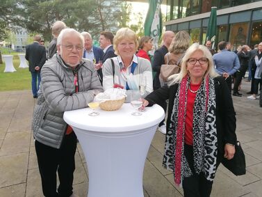 MdB Franke, MdL Lotz und Reinhard Kahl am roten Stehtisch