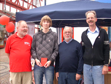 Der Schüler Hendrik Klinge ist neues Mitglied der SPD im Ortsverein Frankenberg. Während des Landratswahlkampfs hat er sich spontan entschieden der SPD beizutreten. Der Landtagsabgeordnete Reinhard Kahl begrüßte das neue Mitglied und überreichte ihm zusammen mit dem Ortsvereinsvorsitzenden Harald Rudolph und Volker Heß sein Parteibuch. Der Abgeordnete freut sich, dass innerhalb kurzer Zeit zwei junge Mitglieder den Weg in den Ortsverein Frankenberg gefunden haben und hofft auf eine gute Zusammenarbeit