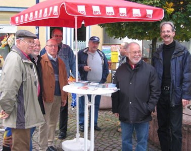 Nach Abschluss der Koalitionsverhandlungen in Hessen haben die heimischen Sozialdemokraten einen Infostand in der Frankenberger Fußgängerzone durchgeführt. Reinhard Kahl, Parlamentarischer Geschäftsführer der SPD-Landtagsfraktion und Mitglied der Verhandlungsrunde stand zusammen mit sozialdemokratischen Mandatsträgern als Gesprächspartner zur Verfügung. Viele Bürgerinnen und Bürger nutzten die Gelegenheit zu einem Kurzgespräch mit dem Abgeordneten