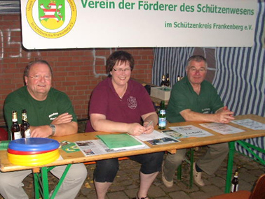 Auch der Förderverein war mit einem Infostand beim Jugendzeltlager vertreten. Ehrenkreisschützenmeister und Fördervereinsvorsitzender Helmut Engel zusammen mit dem ehemaligen Kreisjugendwart Herbert Ochse und dem Kreisvorstandsmitglied Petra Henkel