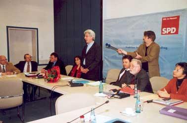Der parlamentarische Geschäftsführer Reinhard Kahl, Fraktionsvorsitzender Jürgen Walter und die SPD-Landesvorsitzende Andrea Ypsilanti gratulierten gestern dem neuen Kasseler Oberbürgermeister Bertram Hilgen in der Landeshauptstadt zu seinem Wahlsieg.