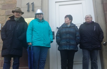 „Zaungäste“ auf der Treppe: Die SPD-Kreisbeigeordnete Monika Svoboda und ihr „grüner Doc“ zusammen mit der Lichtenfelser Stadträtin Birgit Vogt und der Mitarbeiterin der Kreistagsfraktion Doris Pfefferle. Fotografiert von Reinhard Kahl