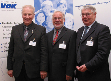 Das Bild zeigt neben Reinhard Kahl den Kreis- und Bezirksvorsitzenden Rolf Petter (Allendorf) und das Mitglied des VDK Landesvorstandes Eugen Becker, der auch jahrelang Vorsitzender der Deutschen Angestelltengewerkschaft in Hessen war.