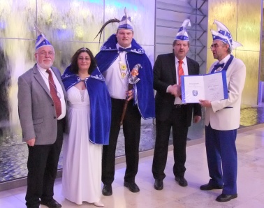 Reinhard Kahl mit dem Prinzenpaar Harald und Despina Mantei, dem neuen Senator Walter Mombrei und dem Mitglied des Elferrats Peter Köhler