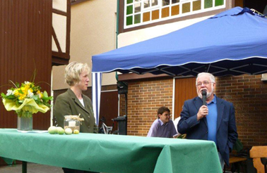 Elvira Heinrichs, Vorsitzende des Schützenvereins, gab einen kurzen Rückblick über die knapp 30-jährige Vereinsgeschichte. Ein Präsent bekamen die zwei „Baustellenleiter“ Ralf Heinrichs und Hartmut Schäfer, und ein Dankeschön ging an alle Mitglieder, die mit über 200 Arbeitsstunden den Standumbau ermöglicht haben.