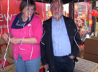 Angelika Kloske-Maar zusammen mit MdL Reinhard Kahl umgeben von den Schnüren der Luftballons