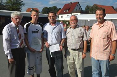 Gutscheine für eine Reise nach Straßburg und nach Wiesbaden waren die Hauptpreise der Tombola, die den Gewinnern Andre Lichtenfels (zweiter v.l.) und Günther Lichtenfels (dritter v.l.) vom Ortsvereinsvorsitzenden Thorsten Eversberg, MdB Gerd Höfer und MdL Reinhard Kahl überreicht wurden.