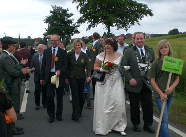 Absoluter Höhepunkt war der Große Festzug mit fast allen Schützenvereinen aus dem Schützenkreis mit ihren jeweiligen Königspaaren. Schirmherr der Veranstaltung war der Bürgermeister von Frankenau und Landratskandidat Dr. Reinhard Kubat. Mit dabei auch der Landtagsabgeordnete Reinhard Kahl, der Bundestagskandidat Dr. Edgar Franke und die Stellv. Kreistagsvorsitzende Iris Ruhwedel.