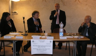 Reinhard Kahl bei seiner Rede zur Präsentation des Buches in Bologna zusammen mit den italienischen Repräsentanten der Region und der Friedensschule