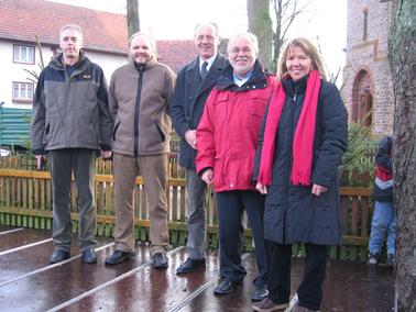 MdL Reinhard Kahl zusammen mit der Stellv. Kreistagsvorsitzenden Iris Ruhwedel, Bürgermeister Dr. Kubat, Ortsvorsteher Metz und der Vorsitzende der Vereinsgemeinschaft Volker Dreiling bei der Eröffnung des Weihnachtsmarktes
