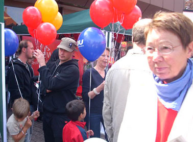 Beim hessischen Familientag war auch die SPD-Landtagsfraktion mit einem eigenen Stand vertreten. Viele Menschen suchten das Gespräch mit den anwesenden Abgeordneten. Auch der heimische MdL Reinhard Kahl war mit dabei, ebenso die bisherige Landtagsabgeordnete und Vizevorsitzende der Kreis-SPD Hannelore Eckhardt. Besonders die Kinder versuchten am Glückrad den Hauptpreis zu gewinnen: eine Sonnenmütze der SPD-Landtagsfraktion. Auch die roten SPD-Luftballons waren heiß begehrt.