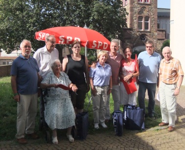 Sie begleiteten den Landtagsabgeordneten Reinhard Kahl auf allen Sommertour-Stationen: Helga Sobotha, Peter Ochse, Willi Röhle, Horst Wolf, Erna Buchbach, Horst Röhle und Ursula Breuer. Mit dabei der Bundestagsabgeordnete Dr. Edgar Franke und Mitarbeiterin Petra Emde