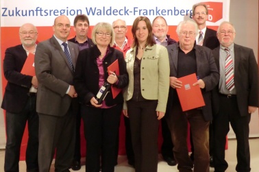 Auf dem Bild von links: Christian Jostes, Werner Bergener (beide Geschäftsführung), MdB Dr. Edgar Franke, Bürgermeisterkandidatin Daniela Neuschäfer, Aufsichtsratsmitglied SPD Waldeck-Frankenberg Günter Schmidt , MdL Reinhard Kahl, Personalrat Uwe Patzer und Landrat Reinhard Kubat.